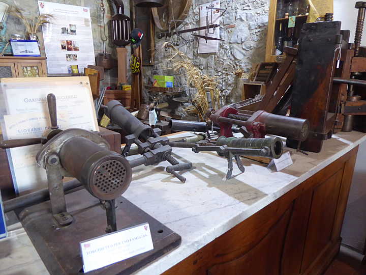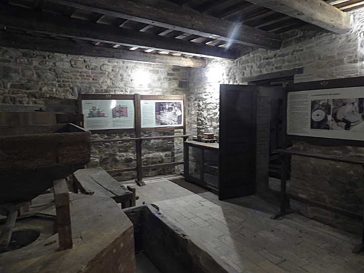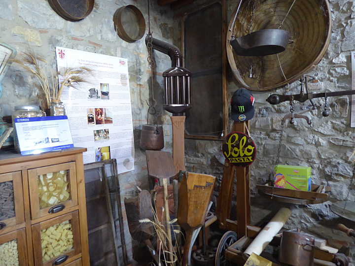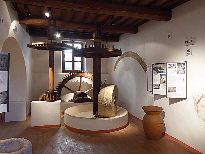 Der Name Museo del Pane ist ehrlich gesagt maßlos übertrieben, denn eigentlich handelt es sich bei dem 2006 eröffneten “Museum” um eine bis in die 80er Jahre des 20. Jh. kommerziell betriebene Wassermühle, deren Geschichte allerdings bis ins 16. Jh. reicht. Die Mühle ist noch funktionsfähig und wird für Besucher auch angestellt. Dies ist sicherlich eindrucksvoll, doch wer etwas über Brot erfahren möchte, wird enttäuscht sein: Der einzige Bezug zum Thema Brot ergibt sich durch einen ausgestellten Apparat, mittels dessen früher das Korn vor dem Mahlen gewaschen wurde. Die Bezeichung Museo del Pane ist leider ein typisches Beispiel für Hochstapelei im Kampf um Marktanteile beim Food-Tourismus …