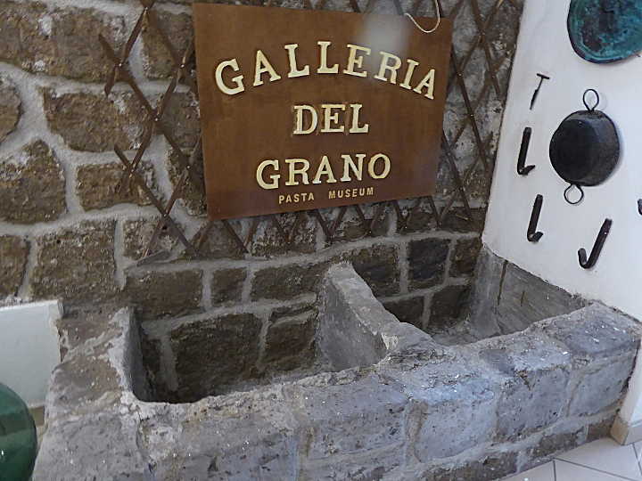 Das Museum ist in einem Teilbereich des Nudelherstellers Somma untergebracht. Und zwar an einem Ort, an dem schon früher, zu Hochzeiten der Pastaproduktion in Gragnano, Nudeln produziert wurden! Davon zeugen noch heute ein Waschtrog, in dem das Korn früher gewaschen wurde, sowie Reste der über ein Aquädukt erfolgten Wasserzuleitung. Zugegeben, es ist ein kleines Museum im Vergleich zu den von großen Lebensmittelkonzernen gesponsorten Museen. Doch um so lobenswerter ist die Initiative des Pastaherstellers Somma, ein kleines Museum geschaffen zu haben. Und dieses Verdienst gilt umso mehr, als es die Gemeinde Gragnano (deren Bedeutung im 18. und 19. Jh. für die Pastaproduktion wir schon an anderer Stelle beleuchtet haben) es bis heute nicht geschafft hat, die eigene Geschichte als Standort der Nudelproduktion in einem kommunalen Museum zu würdigen. Erfreulicherweise wurde die Initiative von Saturno Somma und seiner Frau 2013 im Rahmen der EXPO in Mailand ausgezeichnet.