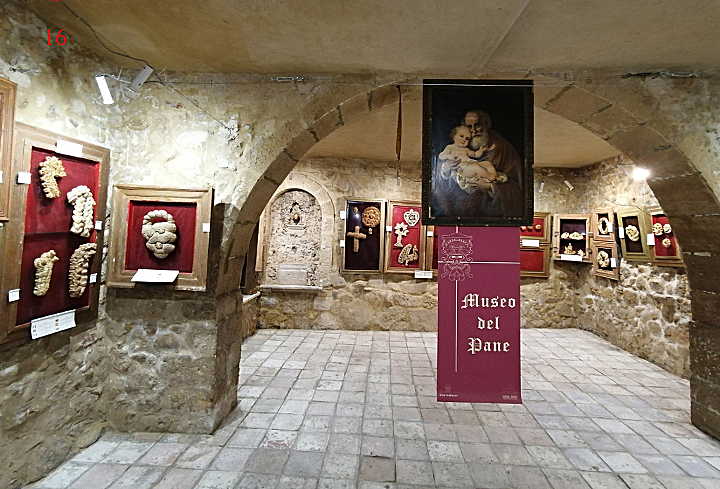 Brot ist nicht nur zum Essen da, sondern hatte früher auch eine wichtige rituelle Funktion. Das Museum betrachtet Brot aus dieser rituellen, kultischen Perspektive und verweist auf eine Vielzahl von Bezügen zwischen Brot und kultischen Festen: Von der griechischen Fruchtbarkeitsgöttin Demeter bis hin zu diversen christlichen Feierlichkeiten. Ca. 1000 historische, meist sehr künstlerisch gestaltete Brote aus Salemi und anderen sizilianischen Gemeinden werden vorgestellt und ihre jeweilige Funktion z.B. im Rahmen eines Heiligenfestes erläutert. Besonders sehenswert sind die aufwändigen St.-Josephs-Altäre.