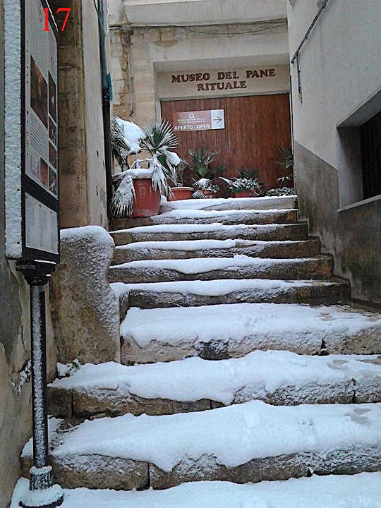 Erst im Mai 2019 wurde das direkt neben der Cattedrale gelegene Museo del Pane in Altamura eröffnet. Pane di Altamura (DOP) ist auch heute noch eine beliebte Brotsorte in Italien: Ein ziemlich dunkel und schön kross gebackenes, von den Dimensionen her meist sehr großes Brot, das ausschließlich aus HartweizenVgl. ausführliche, bebilderte Lebenmittelinfo-Seite Weizenmehl hergestellt wird. In einem Städtchen, das über eine große Brottradition verfügt, durfte natürlich ein diese Tradition spiegelndes kleines Museum nicht fehlen, das nun mit Hilfe des lokalen Bäckerei-Unternehmers Vito Forte eröffnet werden konnte und die lokale Geschichte der Brotproduktion anschaulich – u.a. mittels eines alten Steinofens – zeigt.